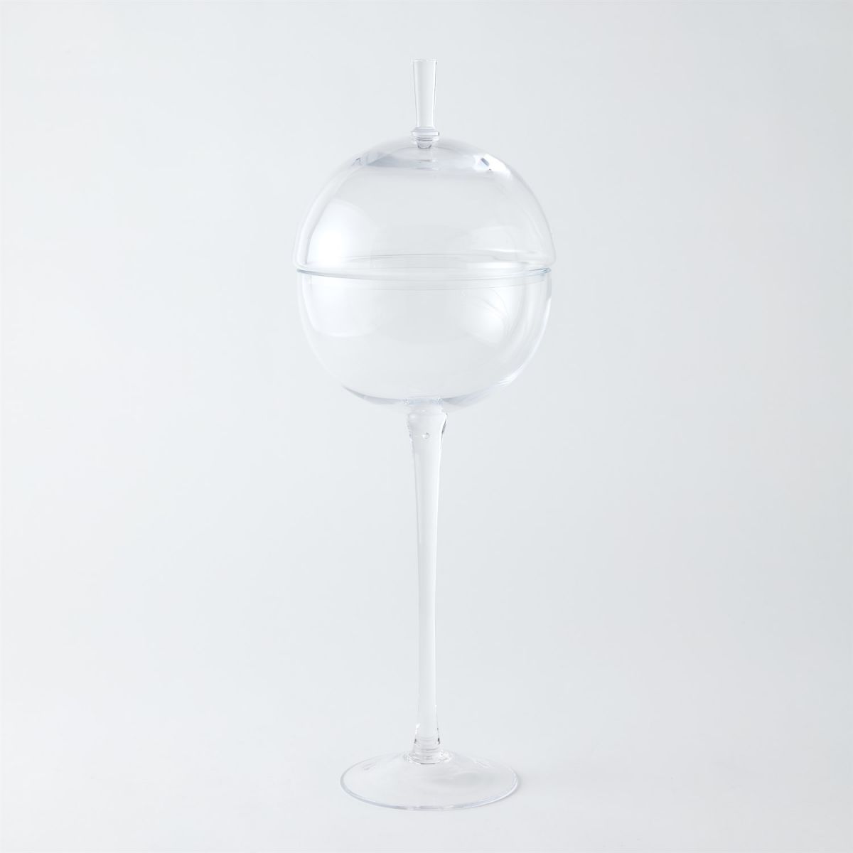 Not only fun, but a fantastic way to display your most cherished pieces, our Having a Ball Covered Bowl is delight to behold. The round, ball-shaped bowl is topped with a domed cover with a simple handle. The whimsical piece sits atop a slender stem complete with a circular base.
