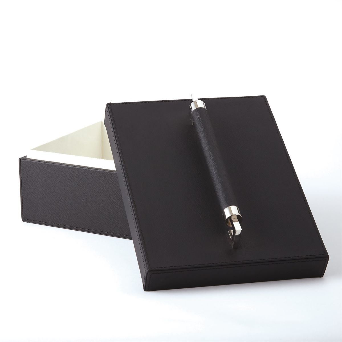 Your trinkets and doodads that never seem to find a permanent home can finally rest with ease. Our Wrapped Leather Handle Box, constructed of 100% top grain cowhide leather, is an elegant way to stash your〝stuff〞! And with the interior of the box being lined in suede cloth, you can rest easy knowing your delicate treasures are sitting in plush comfort.