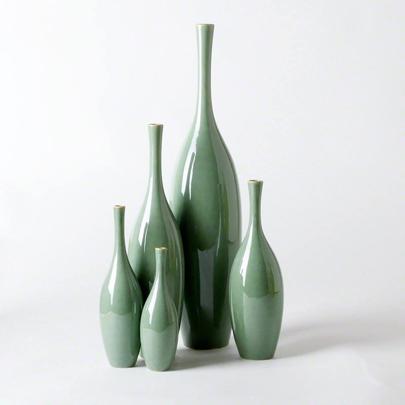 細長的脖頸,曼妙的曲線,柔和的色調,單支放置或多支組合皆可,單獨放置已美不勝收,搭配花卉更加錦上添花。
