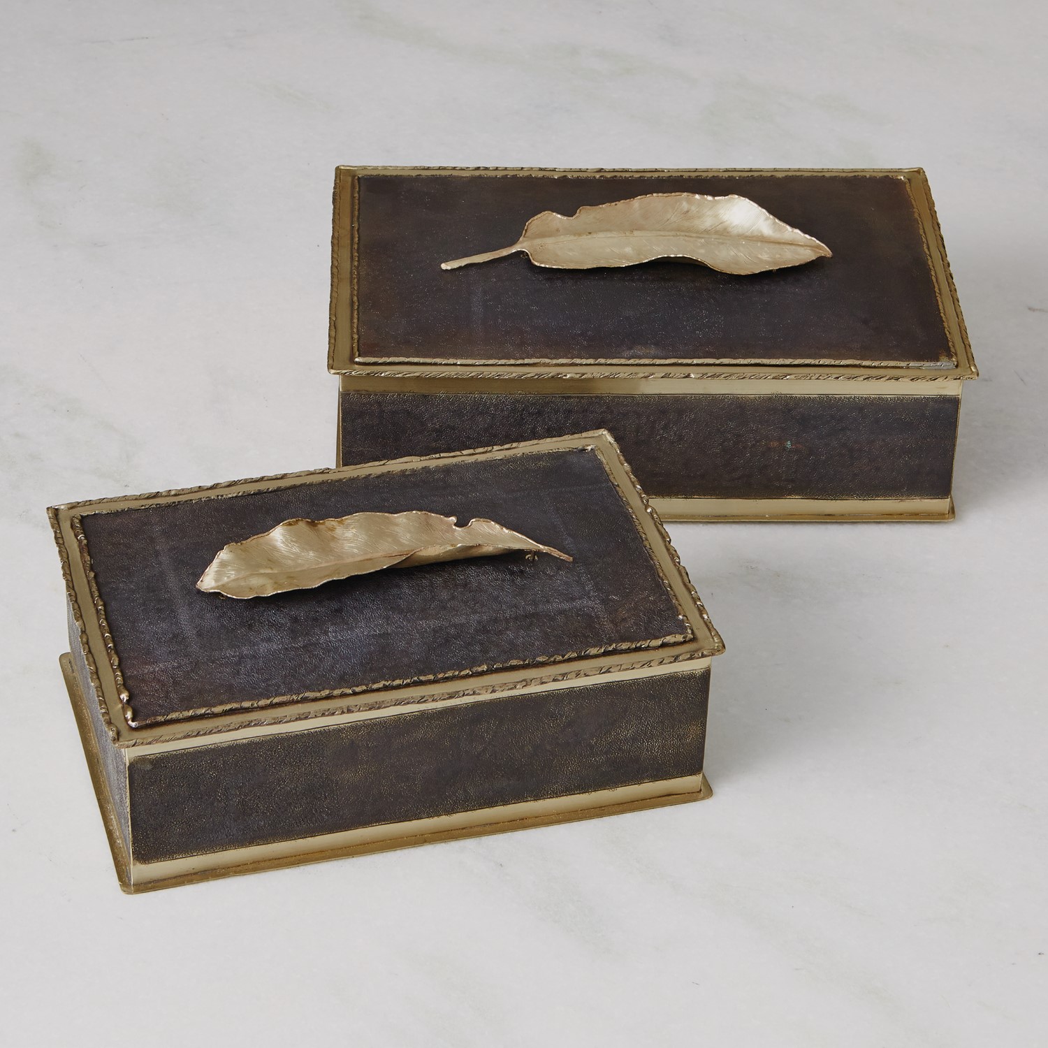 Extensive craftsmanship has gone into making each of the Leaf Metal Boxes. They are comprised entirely of Alpaca Silver, a silver metal alloy which contains no actual silver, but lends itself beautifully to handcrafted metal objects. The hinged boxes are burnished with polished trim and a curvaceous