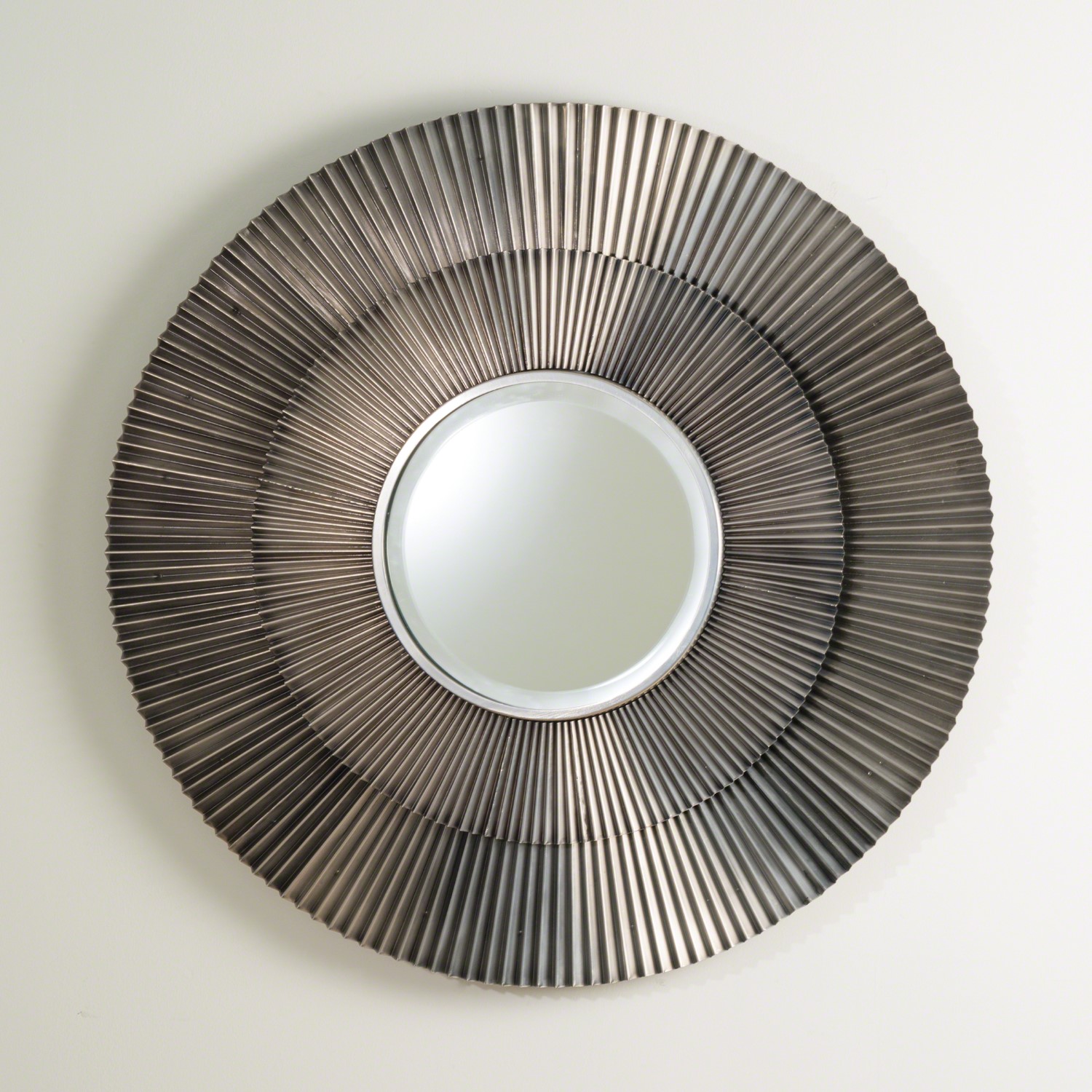 產自印度,Studio A Home 皺褶系列新成員,鋼鐵邊框皺褶全部由手工壓製而成,銀色鍍鎳表層凸顯光澤,細密的構造極具三維立體特色。 A new addition to the Crimp Collection, the frame is hand-crimped steel giving it its three-dimensional character. Nickel finish. Also available in Bronze finish.