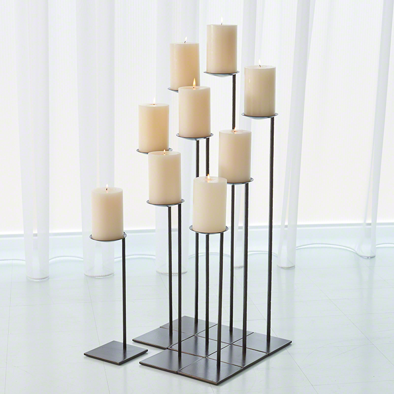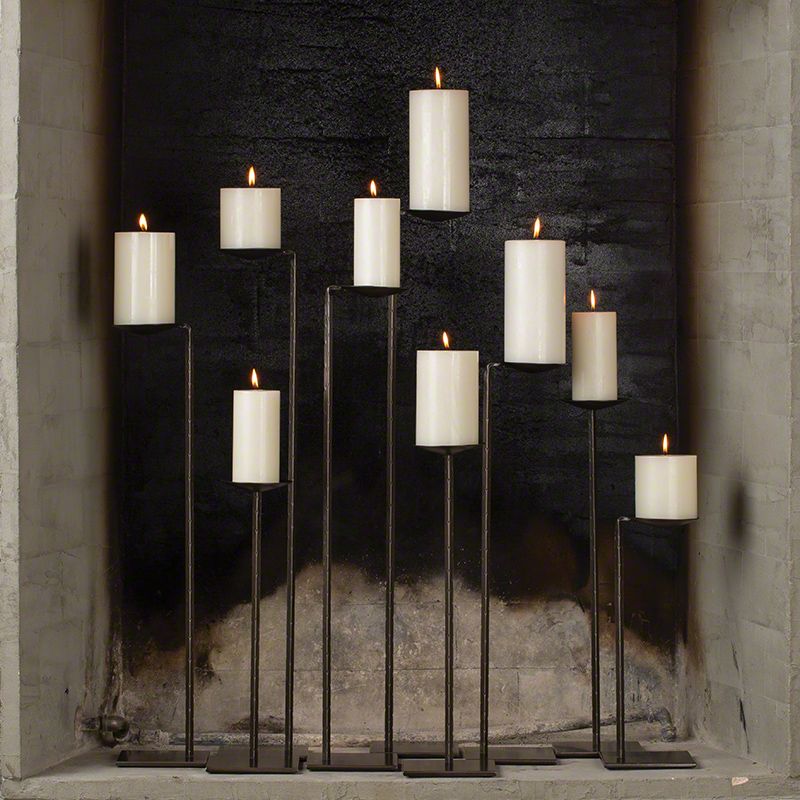 印度進口,可分離式懸臂燭臺,高度各自不同,可隨心所欲演繹出無限可能。蠟燭需另外選購。 Each of the nine iron cantilevered candleholders is a different height making for endless design possibilities. Each holds a 4" Pillar Candle (sold separately).
