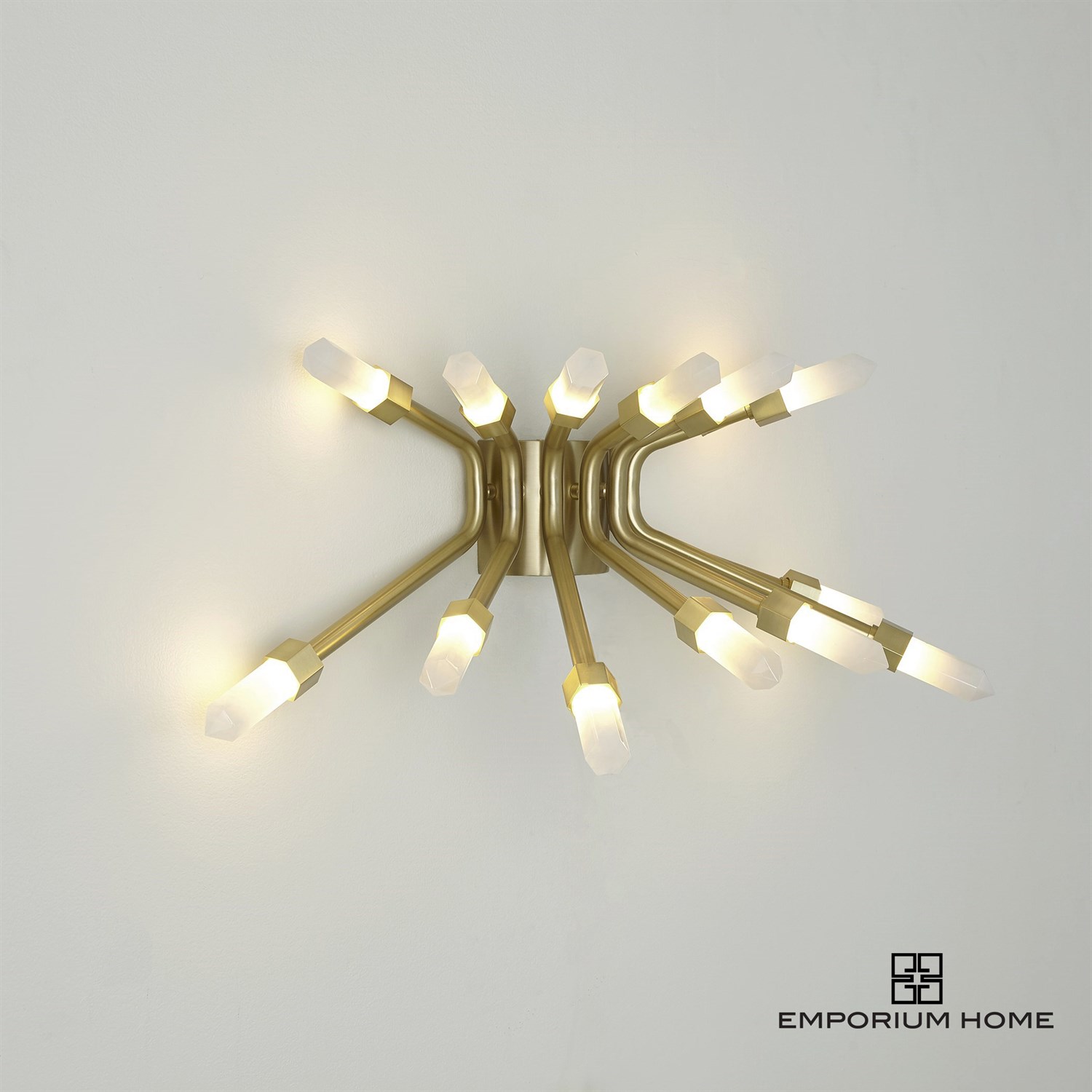One of our best sellers and rightfully so, our Quartz Burst Sconce makes an impact from every angle. Gorgeous natural quartz crystal points backlit with warm LED lights combined with our signature satin nickel finish make this piece an instant focal point in any space.