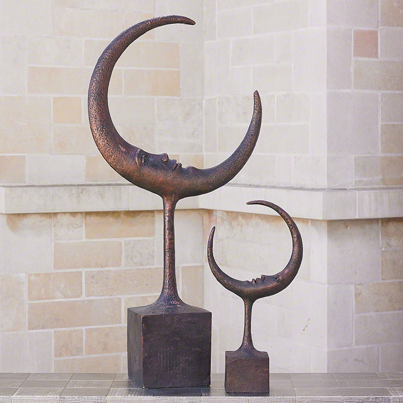 甜蜜,舒緩,晝夜起伏的面孔,是月亮帶給人們的想像。沖刷的淺銅色更具年代感。 Sweet, soothing, nocturnal faces. A single piece of cast iron which has been given a light copper wash.