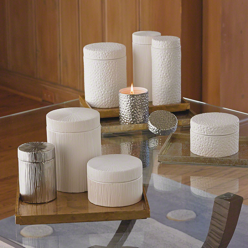 啞白色含蓋存儲罐,內裡光滑,加上旭日條紋,即清新又極具美感。海洋系列為豎紋紋理。※此產品均無附贈蠟燭。