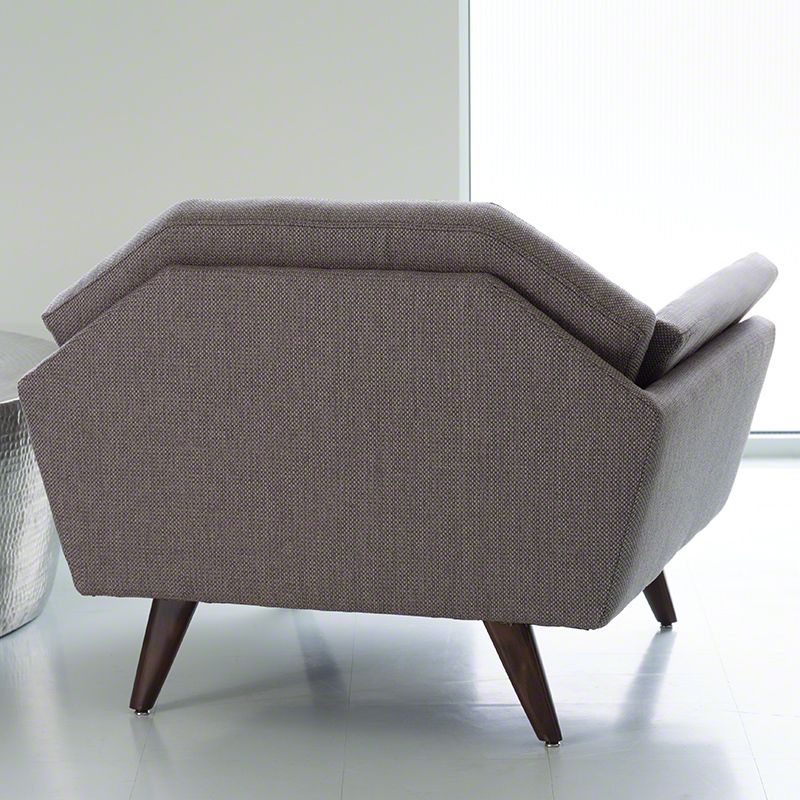 An ode to mid-century modern with a classic twist. The wood trim and legs on the Greta Lounge Chair are carved in Honduras from American Walnut. Down-wrapped, Dacron bottom cushions, hand-tied springs. Available in three fabric choices or COM. Protege Grid Natural, Alvaro Grey, Margo Pewter.