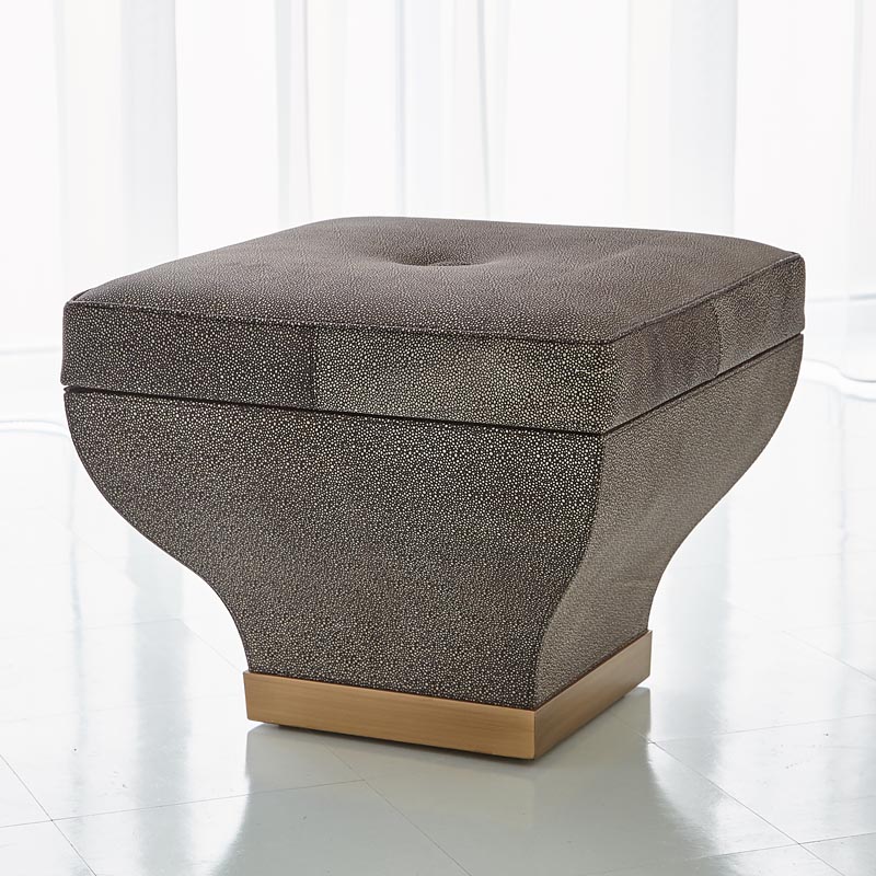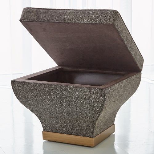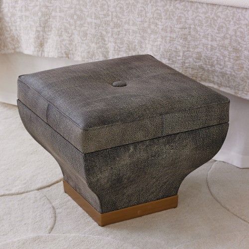 這款擱腳凳提供了充足的有效儲物空間,頂部的軟墊帶有隱藏式鏈子。表層是人造壓花皮革,仿皮布料作為內裡。 The Churchill Ottoman provides lots of useful storage. Upholstered top cushion is attached by a hidden hinge. Faux shagreen embossed leather. Suede cloth interior.