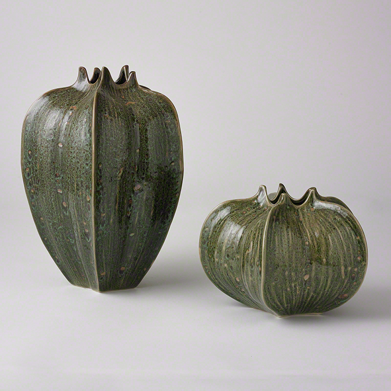 The graceful lines and fine detail of the Star Fruit Collection offer a tribute to the centuries-old craft of fine Portuguese ceramics. Evoking its namesake five-point form, the collection brings a bit of the natural world into your home for an unexpected hint of elegance. The vase is available in a beautiful reactive green glaze or a more delicate matte white glaze(as shown) for a simpler touch.
